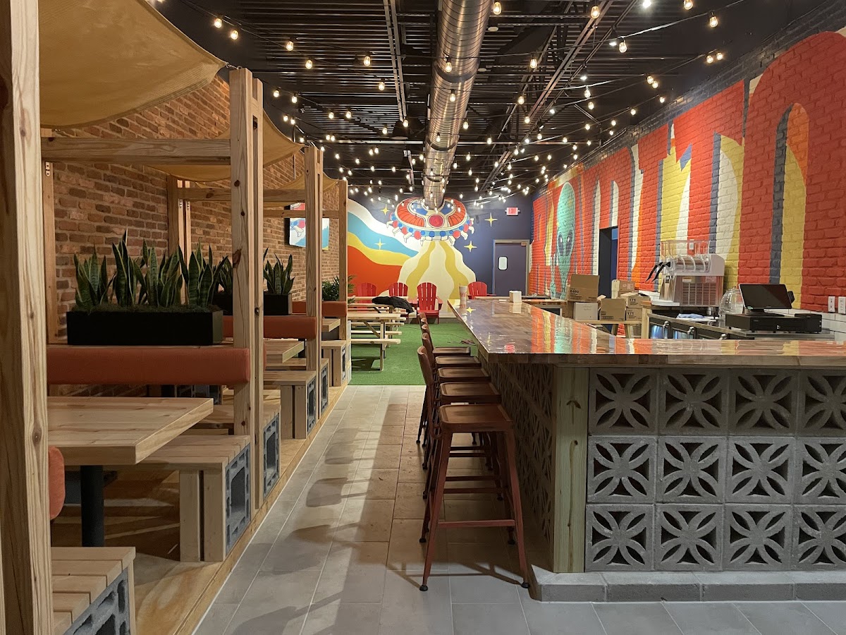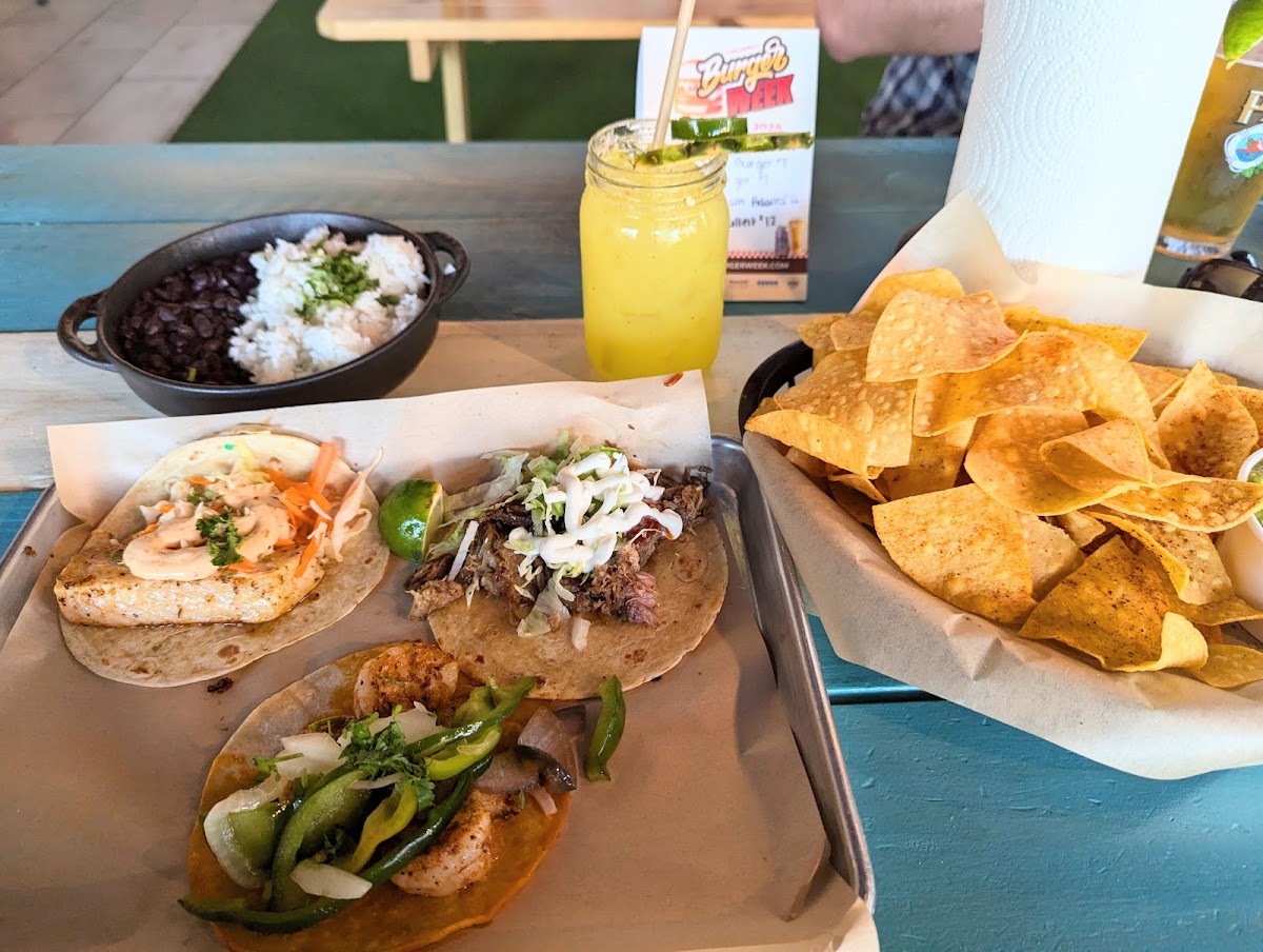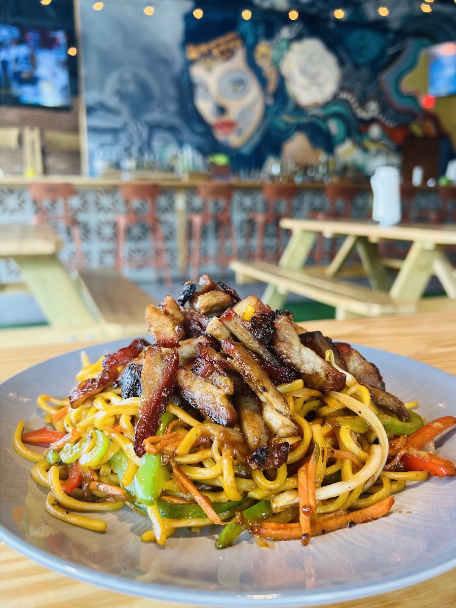 What a fun place! Great food and quick service. They have everything under one roof. Mexican, Chino Latino, Bebo's Burgers & Sandwiches, Loaded Fries, etc. Beautiful decor, picnic tables, games for the kids, tv's, and a full bar. The options are endless depending on whatever your appetite desires. Delicious and chill vibes. Would recommend for sure!!